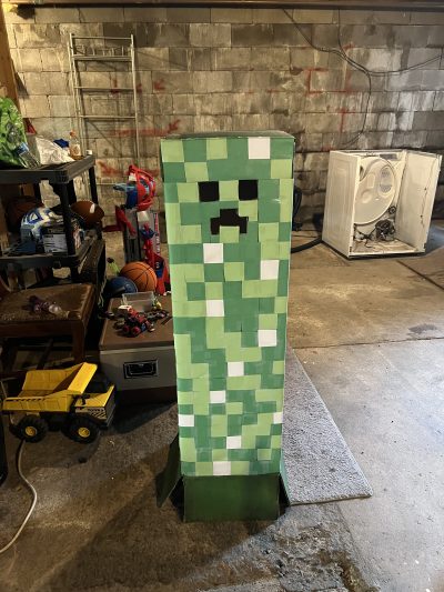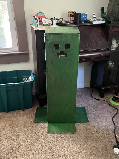 One year I asked my son what he was wanted to be Halloween that year and he said to me two things: a Nintendo Switch and the Creeper from Minecraft. I thought to myself well there’s no chance on finding something like those at the store, and if I did it probably wouldn’t be the best quality. So I decided to make a DIY Minecraft Creeper Halloween costume.