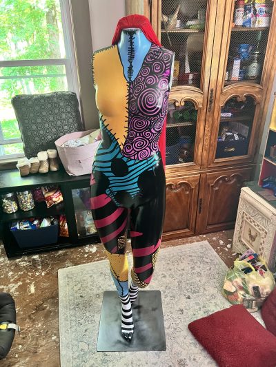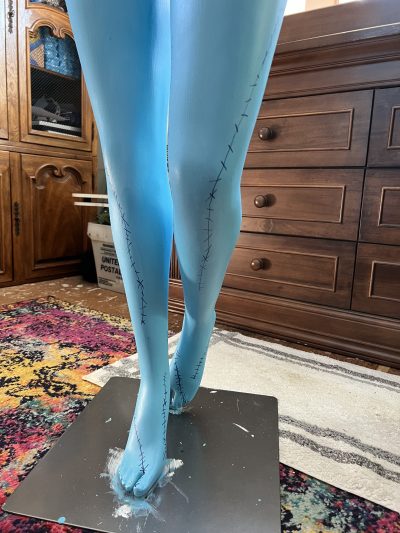 I added some stitches in random spots since I was feeling this undead vibe with her. It took another minute to observe her, and then it came to me – she would make a perfect Sally the rag doll from The Nightmare Before Christmas!