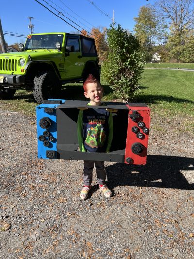 In my last post I mentioned how my son wanted me to make two Halloween costumes for him; the first costume was a Creeper from Minecraft, the second costume was a Nintendo Switch. Making the Creeper was pretty simple – I found an old box with a similar shape of the Creeper and then went online looking for ideas on how to put the pieces together.