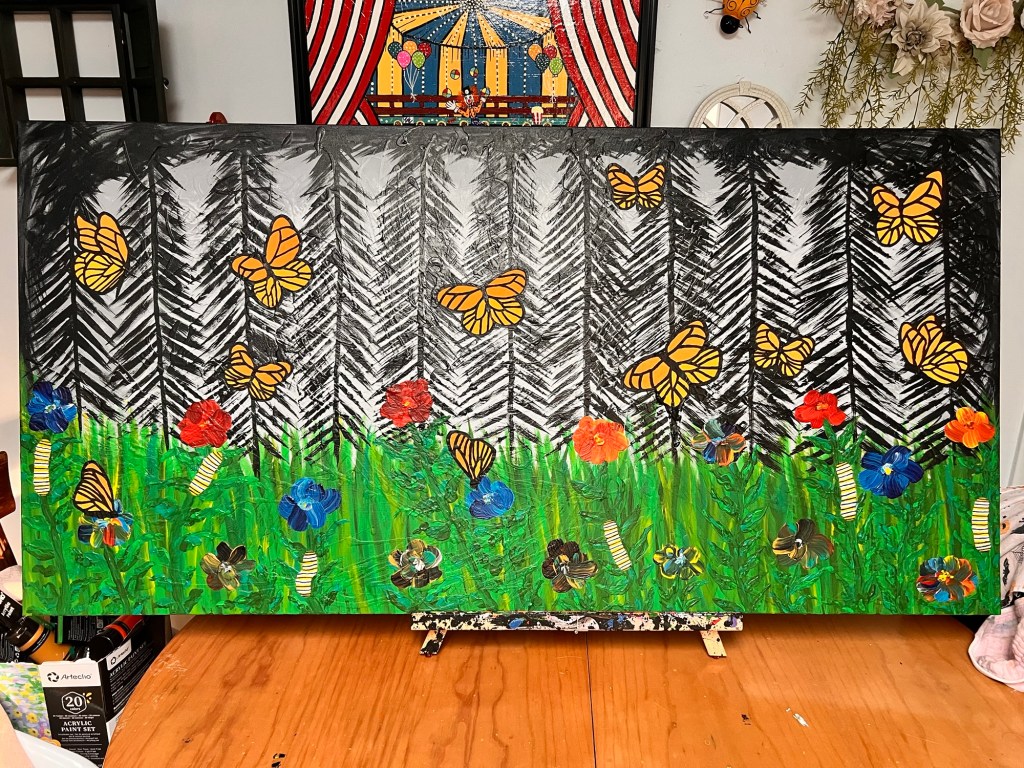 This is my latest painting that I’ve just finished a few days ago and it’s called The Monarch Butterfly Invasion. It took me about a month or so to get this piece done and it’s loaded with tons of details.